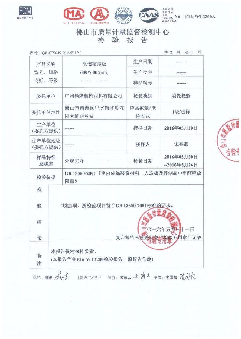 廣東廠家英標BS476防火檢測B級阻燃密度板 低甲醛環(huán)保P2級中纖板
